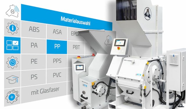 Monitoring is now an option for all sizes, starting from the 150 series machine-side granulators for small parts and sprues right up to the heavy-duty 600 series designed for the toughest applications. The control system detects not only parameters such as power consumption, motor speed and bearing temperatures but also the state of blades, screens and V belts. The recent implementation of the Ethernet-based, cross-system OPC UA standard means the machines can now be integrated into control center systems.