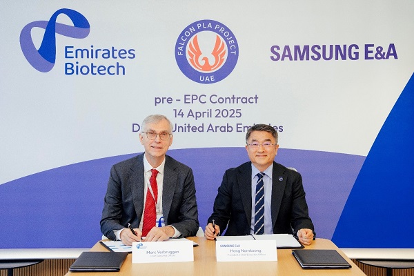 Hong Namkoong, President and CEO of SAMSUNG E&A stated: “With our extensive project experience and advanced design technology, we continue to achieve outstanding results in high-value engineering. We are honored that Emirates Biotech has entrusted us with the Falcon PLA Project, and are fully committed to delivering it successfully. SAMSUNG E&A is honoured to expand its customer base and enter a new market. This achievement strengthens its competitive position for future projects with Emirates Biotech, marking its entry into the growing eco-friendly plastics sector.”